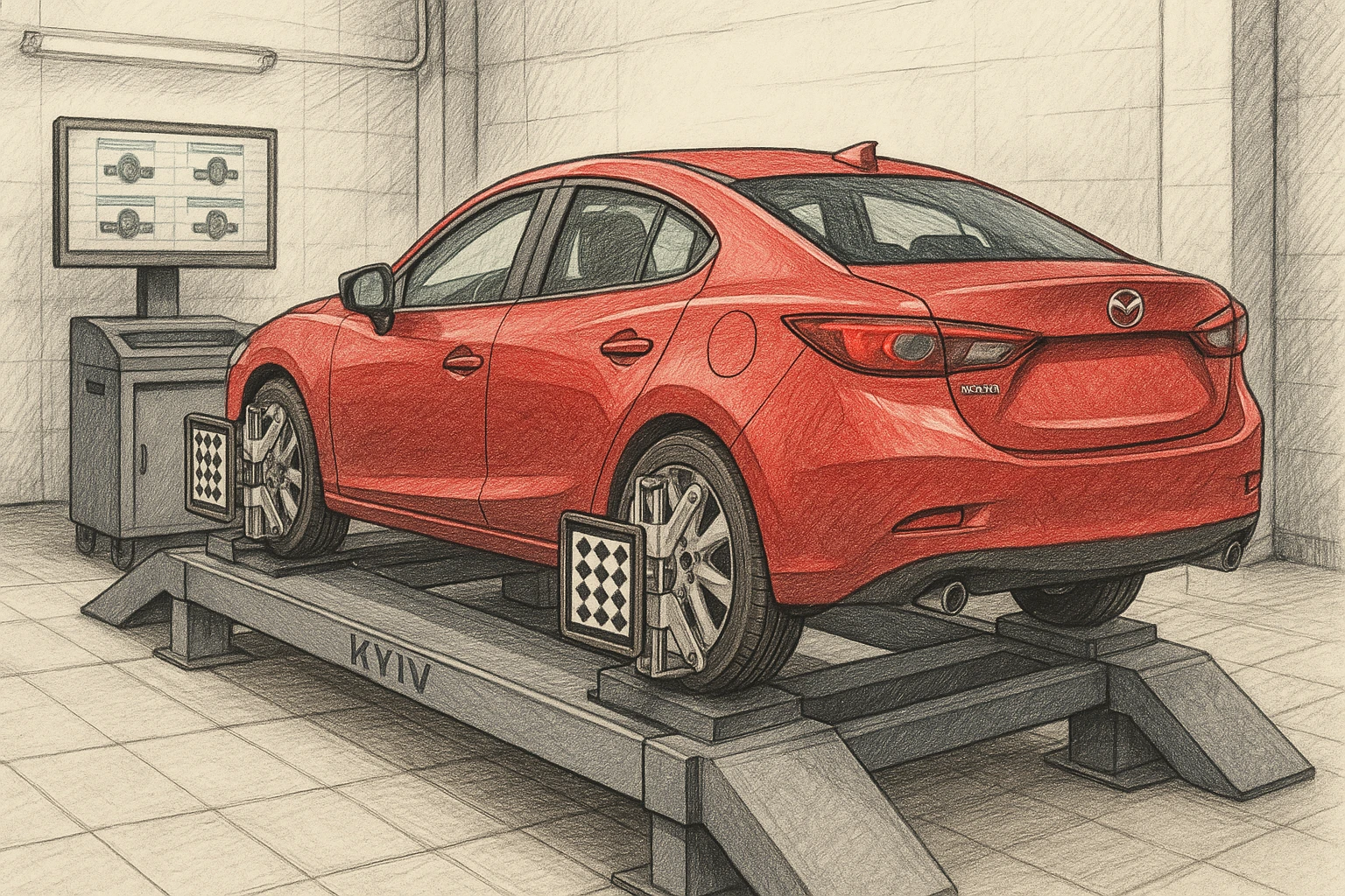 Якщо ви помітили, що автомобіль тягне вбік, не тримає смугу руху, доводиться постійно підрулювати — це не «особливість Mazda» і не «норма для наших доріг», а одна з головних ознак, що варто перевірити розвал-сходження та стан ходової.