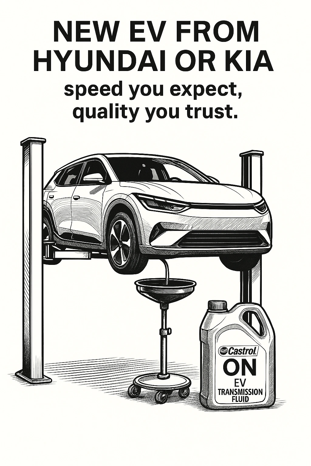 Професійне обслуговування електрокарів Hyundai та Kia: заміна трансмісійного масла/оливи редуктора, перевірка стану магнітів та стружки, використання оригінальних рідин і Castrol ON EV Transmission Fluid. Див. також нашу інструкцію по мастилах для EV.